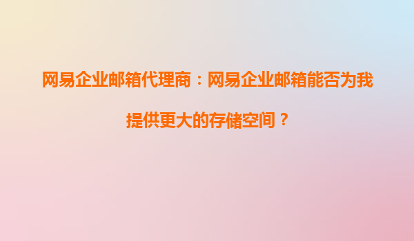 2025-09-20網(wǎng)易企業(yè)郵箱代理商:網(wǎng)易企業(yè)郵箱能否為我提供更大的存儲空間? 引言:企業(yè)郵箱的存儲需求 在數(shù)字化辦公時代,企業(yè)對郵箱存儲空間的需求日益增長。隨著業(yè)務(wù)的擴展和數(shù)據(jù)量的積累,...