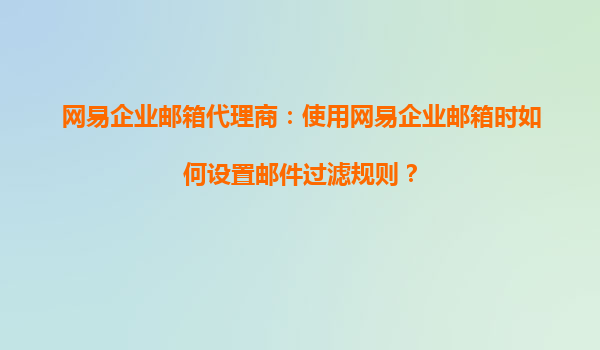 4008-020-360 網(wǎng)易企業(yè)郵箱代理商:使用網(wǎng)易企業(yè)郵箱時(shí)如何設(shè)置郵件過濾規(guī)則? 一、網(wǎng)易企業(yè)郵箱與代理商的優(yōu)勢 網(wǎng)易企業(yè)郵箱作為國內(nèi)領(lǐng)先的企業(yè)級郵箱服務(wù)商,憑借其穩(wěn)定的系統(tǒng)架構(gòu)、高效的垃圾郵件攔截能力以及專業(yè)的企業(yè)級功...