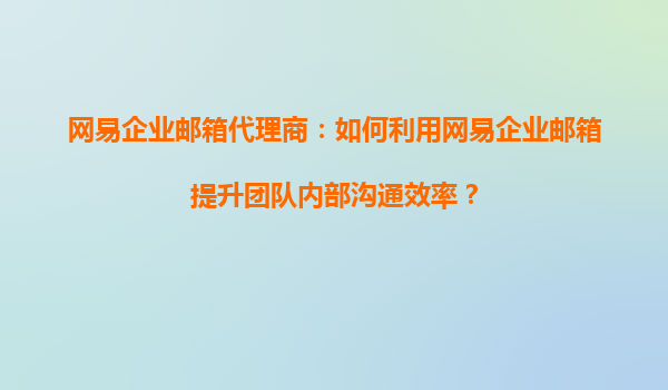 2025-09-18網(wǎng)易企業(yè)郵箱代理商:如何利用網(wǎng)易企業(yè)郵箱提升團(tuán)隊(duì)內(nèi)部溝通效率? 在當(dāng)今快速發(fā)展的商業(yè)環(huán)境中,高效的內(nèi)部溝通是企業(yè)成功的關(guān)鍵因素之一。作為國內(nèi)領(lǐng)先的企業(yè)郵箱服務(wù)提供商,網(wǎng)易企業(yè)郵箱憑借其強(qiáng)大的...