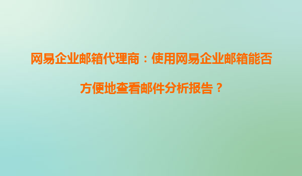 2025-09-17網(wǎng)易企業(yè)郵箱代理商:使用網(wǎng)易企業(yè)郵箱能否方便地查看郵件分析報告? 一、網(wǎng)易企業(yè)郵箱的郵件分析功能解析 作為國內(nèi)領(lǐng)先的企業(yè)級郵箱服務(wù)提供商,網(wǎng)易企業(yè)郵箱為企業(yè)用戶提供了全面的郵件統(tǒng)計分析功...