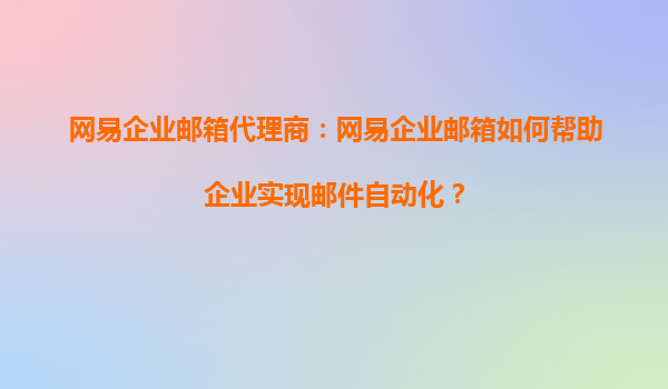 2025-09-16網(wǎng)易企業(yè)郵箱代理商:網(wǎng)易企業(yè)郵箱如何幫助企業(yè)實現(xiàn)郵件自動化? 一、郵件自動化的企業(yè)價值 在數(shù)字化辦公時代,郵件自動化已成為企業(yè)提升效率、降低成本的關(guān)鍵工具。網(wǎng)易企業(yè)郵箱作...