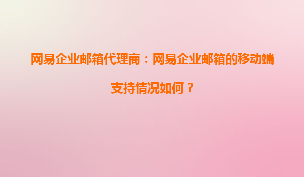 2025-09-16網(wǎng)易企業(yè)郵箱代理商:網(wǎng)易企業(yè)郵箱的移動端支持情況如何? 隨著移動辦公的普及,企業(yè)郵箱的移動端支持能力成為企業(yè)選擇服務(wù)的重要考量因素。作為國內(nèi)領(lǐng)先的企業(yè)郵箱服務(wù)提供商,網(wǎng)易企業(yè)郵箱憑借其強大的技...