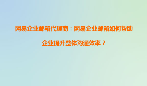 2025-09-16網(wǎng)易企業(yè)郵箱代理商:網(wǎng)易企業(yè)郵箱如何幫助企業(yè)提升整體溝通效率? 在企業(yè)數(shù)字化轉(zhuǎn)型的浪潮中,高效、安全的內(nèi)部溝通工具已成為企業(yè)運營的核心需求。作為國內(nèi)領(lǐng)先的企業(yè)郵箱服務(wù)提供商,網(wǎng)易企業(yè)郵箱...