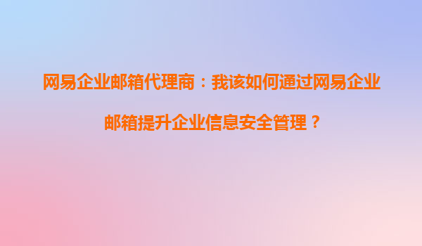 2025-09-16網(wǎng)易企業(yè)郵箱代理商:我該如何通過網(wǎng)易企業(yè)郵箱提升企業(yè)信息安全管理? 在數(shù)字化時(shí)代,企業(yè)信息安全已成為企業(yè)管理的重要課題。無論是內(nèi)部溝通還是客戶數(shù)據(jù)保護(hù),郵件安全都占據(jù)核心地位。作為國內(nèi)領(lǐng)先的企...