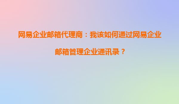 2025-09-16網(wǎng)易企業(yè)郵箱代理商:我該如何通過網(wǎng)易企業(yè)郵箱管理企業(yè)通訊錄? 在當(dāng)今快節(jié)奏的商業(yè)環(huán)境中,高效的企業(yè)通訊錄管理對(duì)于提升企業(yè)溝通效率和團(tuán)隊(duì)協(xié)作至關(guān)重要。作為中國領(lǐng)先的企業(yè)郵箱服務(wù)提供商,網(wǎng)易企業(yè)郵箱...
