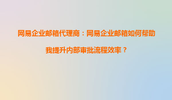 2025-09-16網(wǎng)易企業(yè)郵箱代理商:網(wǎng)易企業(yè)郵箱如何幫助我提升內(nèi)部審批流程效率? 一、引言:數(shù)字化辦公時(shí)代的高效需求 在數(shù)字化轉(zhuǎn)型加速的今天,企業(yè)內(nèi)部的審批流程效率直接影響業(yè)務(wù)響應(yīng)速度和運(yùn)營成本。傳統(tǒng)紙質(zhì)或分...