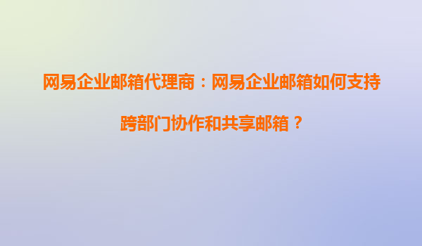 2025-09-16網(wǎng)易企業(yè)郵箱代理商:網(wǎng)易企業(yè)郵箱如何支持跨部門協(xié)作和共享郵箱? 在現(xiàn)代企業(yè)中,高效的跨部門協(xié)作和信息共享是提升工作效率的關(guān)鍵。網(wǎng)易企業(yè)郵箱作為國內(nèi)領(lǐng)先的企業(yè)郵箱服務(wù)提供商,憑借強(qiáng)大的功能...