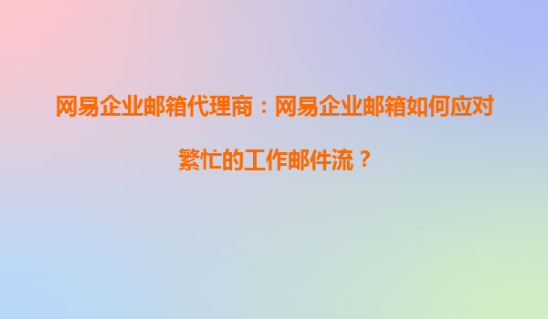 2025-09-16網易企業(yè)郵箱代理商:網易企業(yè)郵箱如何幫助我應對郵件流量高峰期? 一、郵件流量高峰期的挑戰(zhàn) 在企業(yè)日常運營中,節(jié)假日促銷、大型活動、重要項目發(fā)布等場景往往會導致郵件發(fā)送量激增。傳統的企業(yè)郵箱...