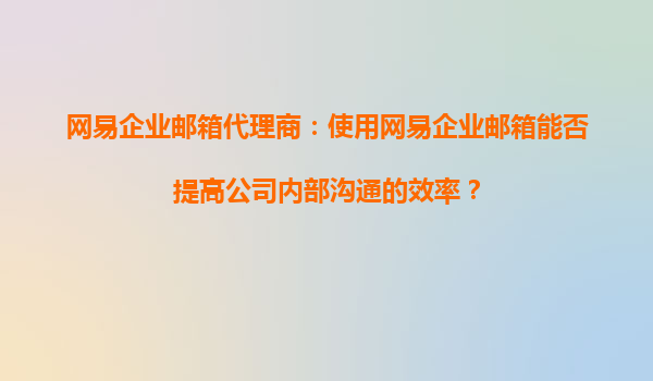 網易企業(yè)郵箱代理商:使用網易企業(yè)郵箱能否提高公司內部溝通的效率? 在現代企業(yè)管理中,高效的內部溝通是推動業(yè)務發(fā)展的關鍵因素之一。企業(yè)郵箱作為公司與員工、部門之間溝通的重要工具,其功能性、安全性...