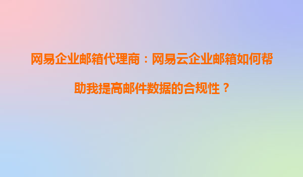 2025-09-16網(wǎng)易企業(yè)郵箱代理商:網(wǎng)易云企業(yè)郵箱如何幫助我提高郵件數(shù)據(jù)的合規(guī)性? 一、引言 在數(shù)字化辦公時(shí)代,企業(yè)郵箱不僅是溝通工具,更是數(shù)據(jù)安全與合規(guī)的重要載體。隨著《數(shù)據(jù)安全法》《個(gè)人信...