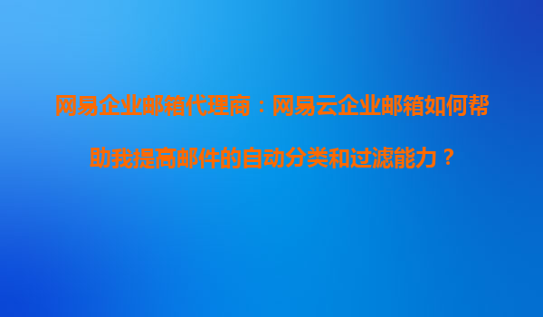 2025-09-16網(wǎng)易企業(yè)郵箱代理商:網(wǎng)易云企業(yè)郵箱如何幫助我提高郵件的自動(dòng)分類和過(guò)濾能力? 一、引言:企業(yè)郵件管理的痛點(diǎn)與需求 在數(shù)字化轉(zhuǎn)型的浪潮中,電子郵件作為企業(yè)日常溝通的基礎(chǔ)工具,其管理效...