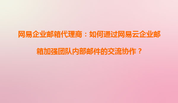 2025-09-16網(wǎng)易企業(yè)郵箱代理:如何通過(guò)網(wǎng)易云企業(yè)郵箱加強(qiáng)團(tuán)隊(duì)內(nèi)部郵件的溝通協(xié)作? 一、引言:企業(yè)郵件協(xié)作的重要性 在數(shù)字化的商業(yè)環(huán)境中,高效的企業(yè)郵箱系統(tǒng)已成為團(tuán)隊(duì)協(xié)作的核心工具。網(wǎng)易云企業(yè)郵箱憑借其穩(wěn)定、...