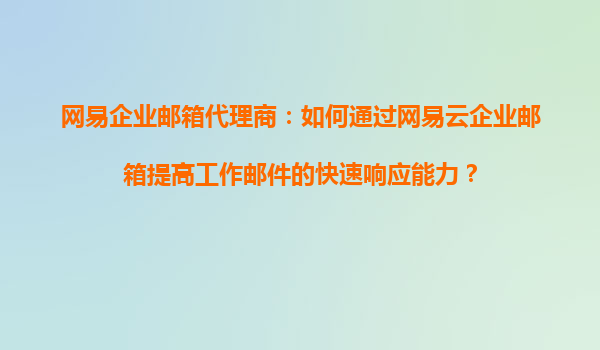2025-09-16網(wǎng)易企業(yè)郵箱代理商:網(wǎng)易云企業(yè)郵箱如何幫助企業(yè)減少郵件發(fā)送中的故障? 引言 在現(xiàn)代企業(yè)中,電子郵件作為重要的溝通工具之一,其穩(wěn)定性和可靠性直接影響著企...