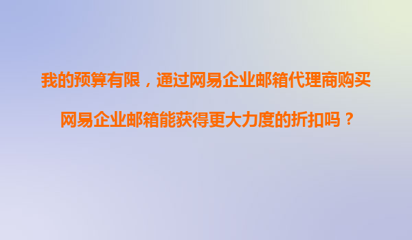 2025-11-14預(yù)算有限?通過網(wǎng)易企業(yè)郵箱代理商購買能獲得更大力度的折扣嗎? 一、預(yù)算有限,如何選擇網(wǎng)易企業(yè)郵箱? 對于預(yù)算有限的企業(yè)而言,選擇一款性價比高的企業(yè)郵箱至關(guān)重要。網(wǎng)易企業(yè)郵箱作為國內(nèi)...