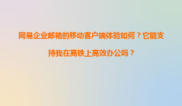 4008-020-360 網(wǎng)易企業(yè)郵箱移動客戶端體驗評測:高鐵辦公也能高效暢行 一、移動辦公場景下的核心需求 在快節(jié)奏的商務(wù)場景中,移動辦公已成為剛需。高鐵作為中國特色的"移動辦公室",對郵箱客戶端提出了三大核心要求: ...