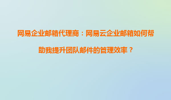 2025-09-05網(wǎng)易企業(yè)郵箱代理商:網(wǎng)易云企業(yè)郵箱如何高效提升團隊郵件管理效率 一、為什么選擇網(wǎng)易企業(yè)郵箱? 在數(shù)字化辦公時代,高效、安全的郵件系統(tǒng)是企業(yè)管理的重要基石。網(wǎng)易企業(yè)郵箱作為國內(nèi)...