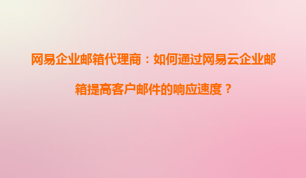 2025-09-05網(wǎng)易企業(yè)郵箱代理商:如何通過網(wǎng)易云企業(yè)郵箱提高客戶郵件的響應(yīng)速度? 引言 在當今快節(jié)奏的商業(yè)環(huán)境中,高效的郵件溝通是提升客戶滿意度和業(yè)務(wù)效率的關(guān)鍵。作...