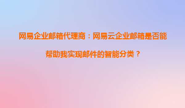 2025-09-05網(wǎng)易企業(yè)郵箱代理商:網(wǎng)易云企業(yè)郵箱是否能幫助我實現(xiàn)郵件的智能分類? 隨著企業(yè)信息化程度的提升,郵件系統(tǒng)在企業(yè)管理中發(fā)揮著越來越重要的作用。作為國內(nèi)領(lǐng)先的企業(yè)郵箱服務(wù)提供商,網(wǎng)易企業(yè)郵箱憑借其強大的技術(shù)...
