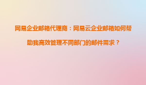2025-09-05網(wǎng)易企業(yè)郵箱代理商:網(wǎng)易云企業(yè)郵箱如何幫助我高效管理不同部門的郵件需求? 一、網(wǎng)易企業(yè)郵箱的核心優(yōu)勢 作為國內(nèi)領(lǐng)先的企業(yè)郵箱服務(wù)提供商,網(wǎng)易企業(yè)郵箱(網(wǎng)易云企業(yè)郵箱)憑借其穩(wěn)定的系統(tǒng)架...