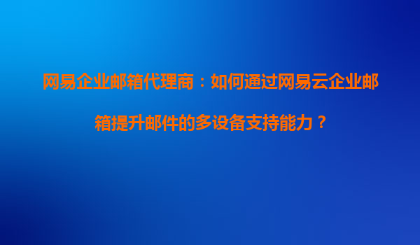 2025-09-05網(wǎng)易企業(yè)郵箱代理商:如何通過網(wǎng)易云企業(yè)郵箱提升郵件的多設(shè)備支持能力? 一、多設(shè)備辦公的趨勢與挑戰(zhàn) 隨著移動互聯(lián)網(wǎng)的普及,企業(yè)員工越來越依賴多設(shè)備(電腦、手機、平板等)處理工作郵件。...
