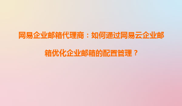 2025-09-05網(wǎng)易企業(yè)郵箱代理商:如何通過網(wǎng)易云企業(yè)郵箱優(yōu)化企業(yè)郵箱的配置管理? 一、企業(yè)郵箱配置管理的核心需求 在數(shù)字化辦公時代,企業(yè)郵箱作為內(nèi)部溝通和外部業(yè)務(wù)往來的核心工具,其配置管理效率直接影響企業(yè)運...