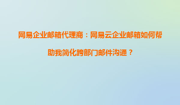 2025-09-04網(wǎng)易企業(yè)郵箱代理商:網(wǎng)易云企業(yè)郵箱如何幫助我簡化跨部門郵件溝通? 一、引言:跨部門郵件溝通的痛點與需求 在現(xiàn)代企業(yè)中,跨部門協(xié)作是日常運營的核心環(huán)節(jié),而郵件作為傳統(tǒng)且正式的溝...