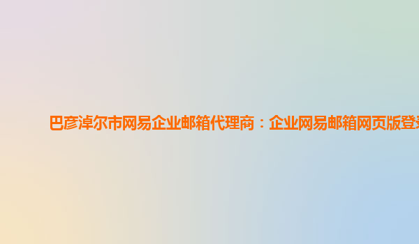 4008-020-360 巴彥淖爾市網(wǎng)易企業(yè)郵箱代理商:企業(yè)網(wǎng)易郵箱網(wǎng)頁(yè)版登錄 在現(xiàn)代信息化的時(shí)代,企業(yè)無(wú)論大小都離不開(kāi)電子郵件作為溝通工具的重要性。網(wǎng)易企業(yè)郵箱作為國(guó)內(nèi)領(lǐng)先的企業(yè)郵箱服務(wù)商之一,以其穩(wěn)定、安全、可靠的特點(diǎn)備受...