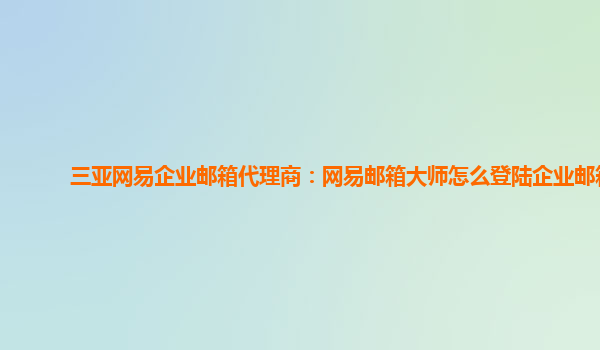 4008-020-360 三亞網(wǎng)易企業(yè)郵箱代理商:網(wǎng)易郵箱大師優(yōu)勢(shì)與好用之處 背景介紹 作為三亞地區(qū)的網(wǎng)易企業(yè)郵箱代理商,我們深知網(wǎng)易郵箱大師作為企業(yè)郵箱的優(yōu)勢(shì)和好用之處。網(wǎng)易企業(yè)郵箱是一款專業(yè)的企業(yè)級(jí)電子郵件服務(wù),在功能、安...