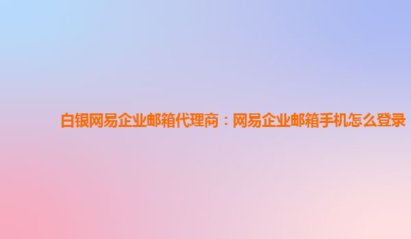 2024-01-21白銀網(wǎng)易企業(yè)郵箱代理商:網(wǎng)易企業(yè)郵箱手機(jī)怎么登錄 作為白銀地區(qū)的網(wǎng)易企業(yè)郵箱代理商,我們深知網(wǎng)易企業(yè)郵箱在移動(dòng)設(shè)備上的便利性和優(yōu)勢(shì)。現(xiàn)在,我們將教您如何使用手機(jī)登錄網(wǎng)易企業(yè)郵箱,并分享一些使用企業(yè)郵箱...