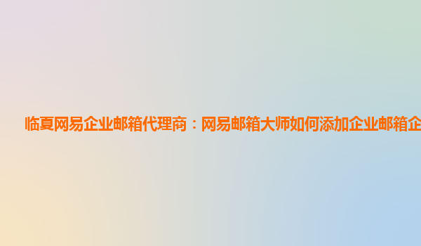 2024-01-21網(wǎng)易企業(yè)郵箱代理商:網(wǎng)易郵箱大師如何添加企業(yè)郵箱 網(wǎng)易企業(yè)郵箱是一款功能強(qiáng)大且穩(wěn)定可靠的企業(yè)郵箱解決方案,很多企業(yè)都選擇使用網(wǎng)易企業(yè)郵箱來(lái)提升工作效率和信息安全性。而作為臨夏網(wǎng)易企業(yè)郵箱代理商,我們將...