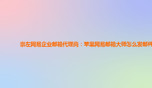 2024-01-21崇左網(wǎng)易企業(yè)郵箱代理商:蘋果網(wǎng)易郵箱大師怎么發(fā)郵件 1.網(wǎng)易企業(yè)郵箱優(yōu)勢 網(wǎng)易企業(yè)郵箱是一款專業(yè)的企業(yè)郵箱解決方案,擁有以下優(yōu)勢: 穩(wěn)定可靠:網(wǎng)易企業(yè)郵箱采用高性能、高可用的服務(wù)器集群,保障郵件發(fā)送和...