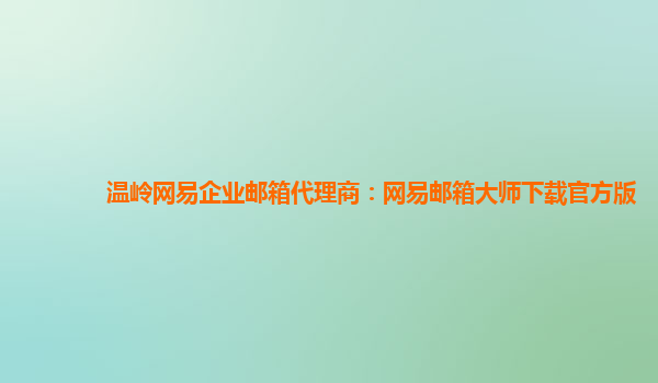 2024-01-19溫嶺網(wǎng)易企業(yè)郵箱代理商:網(wǎng)易郵箱大師下載官方版 作為一家專業(yè)的溫嶺網(wǎng)易企業(yè)郵箱代理商,我們非常榮幸為您推薦網(wǎng)易郵箱大師,這是一款功能強(qiáng)大、穩(wěn)定可靠的企業(yè)郵箱客戶端。經(jīng)過長(zhǎng)期的使用和體驗(yàn),我們對(duì)網(wǎng)易企業(yè)...