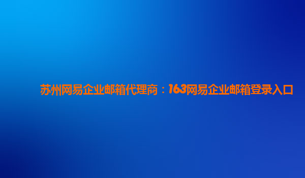 4008-020-360 蘇州網(wǎng)易企業(yè)郵箱代理商:163網(wǎng)易企業(yè)郵箱登錄入口 尊敬的用戶,您好!今天,我將為大家介紹一款非常優(yōu)秀的企業(yè)郵箱服務(wù)——163網(wǎng)易企業(yè)郵箱。 一、網(wǎng)易企業(yè)郵箱的優(yōu)勢 163網(wǎng)易企業(yè)郵箱是中國知名互聯(lián)網(wǎng)公司網(wǎng)易...