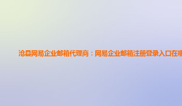 2024-01-13網(wǎng)易企業(yè)郵箱注冊登錄入口在哪看 作為滄縣的網(wǎng)易企業(yè)郵箱代理商,我們將介紹網(wǎng)易企業(yè)郵箱的優(yōu)勢,并簡單明了地闡述注冊登錄入口在哪里。 網(wǎng)易企業(yè)郵箱的優(yōu)勢 可靠性:網(wǎng)易企業(yè)郵箱使用穩(wěn)定、可靠的服...