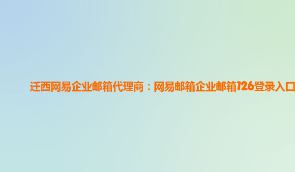 2024-01-14遷西網(wǎng)易企業(yè)郵箱代理商:網(wǎng)易郵箱企業(yè)郵箱126登錄入口 小標(biāo)題1:網(wǎng)易企業(yè)郵箱代理商的重要性 作為遷西地區(qū)的網(wǎng)易企業(yè)郵箱代理商,我們的任務(wù)是幫助企業(yè)建立和管理高效、安全的郵件通信系統(tǒng)。通過選擇我們作為代理...