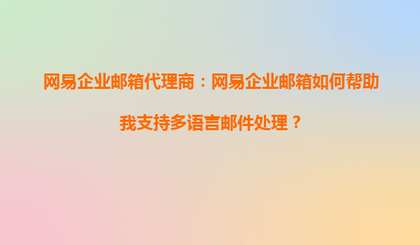 2025-08-24網(wǎng)易企業(yè)郵箱代理商:網(wǎng)易企業(yè)郵箱如何幫助我支持多語(yǔ)言郵件處理? 在全球化的商業(yè)環(huán)境中,企業(yè)需要與來自不同國(guó)家和地區(qū)的客戶、合作伙伴進(jìn)行溝通。多語(yǔ)言郵件處理能力成為企業(yè)郵箱不可或缺的功能之...