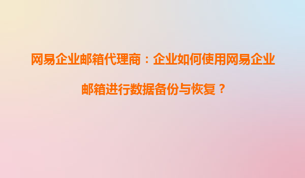 4008-020-360 網(wǎng)易企業(yè)郵箱代理商:企業(yè)如何使用網(wǎng)易企業(yè)郵箱進(jìn)行數(shù)據(jù)備份與恢復(fù)? 在當(dāng)今數(shù)字化時(shí)代,企業(yè)數(shù)據(jù)的安全性和可恢復(fù)性變得尤為重要。作為國(guó)內(nèi)領(lǐng)先的企業(yè)郵箱服務(wù)提供商,網(wǎng)易企業(yè)郵箱憑借其強(qiáng)大的功能...