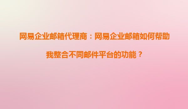 2025-08-24網(wǎng)易企業(yè)郵箱代理商:網(wǎng)易企業(yè)郵箱如何幫助我整合不同郵件平臺(tái)的功能? 在當(dāng)今數(shù)字化辦公環(huán)境中,企業(yè)往往需要使用多個(gè)郵件平臺(tái)來滿足不同業(yè)務(wù)需求,但多平臺(tái)管理可能導(dǎo)致效率低下、數(shù)據(jù)分散等問題。網(wǎng)易企業(yè)郵...
