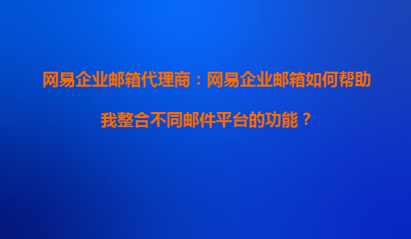 2025-08-26網(wǎng)易企業(yè)郵箱代理商:網(wǎng)易企業(yè)郵箱如何幫助我整合不同郵件平臺(tái)的功能? 在當(dāng)今數(shù)字化辦公環(huán)境中,企業(yè)往往需要使用多個(gè)郵件平臺(tái)來滿足不同業(yè)務(wù)需求,但多平臺(tái)管理可能導(dǎo)致效率低下、數(shù)據(jù)分散等問題。網(wǎng)易企業(yè)郵...