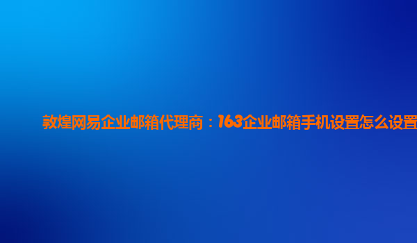 2024-01-11敦煌網(wǎng)易企業(yè)郵箱代理商:163企業(yè)郵箱手機(jī)設(shè)置怎么設(shè)置 網(wǎng)易企業(yè)郵箱是一款功能強(qiáng)大、穩(wěn)定可靠的企業(yè)郵箱服務(wù),而敦煌網(wǎng)易企業(yè)郵箱代理商提供專業(yè)的企業(yè)郵箱服務(wù)。在使用163企業(yè)郵箱時(shí),我們可以通過手機(jī)設(shè)置來方便...