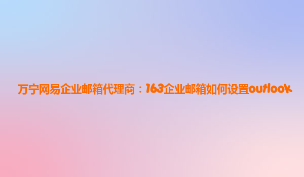 2024-01-11萬寧網(wǎng)易企業(yè)郵箱代理商:163企業(yè)郵箱如何設(shè)置outlook 簡介 本文將介紹如何在Outlook中正確設(shè)置使用163企業(yè)郵箱,并說明網(wǎng)易企業(yè)郵箱的優(yōu)勢。 設(shè)置步驟 打開Outlook軟件,點(diǎn)擊菜單欄中的“工具”...