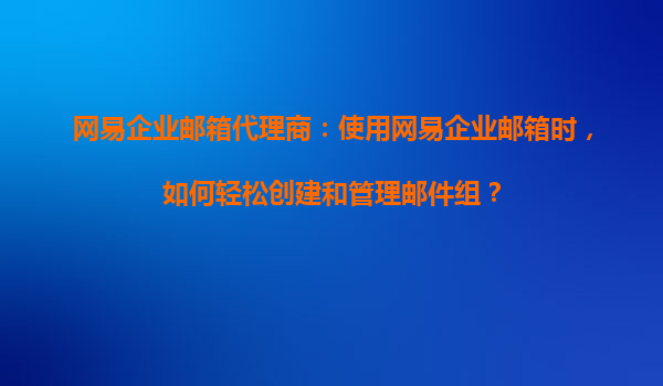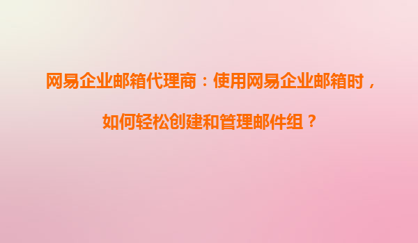 2025-08-23網(wǎng)易企業(yè)郵箱代理商:使用網(wǎng)易企業(yè)郵箱時(shí),如何輕松創(chuàng)建和管理郵件組? 在當(dāng)今快節(jié)奏的商業(yè)環(huán)境中,高效溝通是企業(yè)成功的關(guān)鍵因素之一。網(wǎng)易企業(yè)郵箱作為國(guó)內(nèi)領(lǐng)先的企業(yè)郵箱服務(wù)提供商,憑借其強(qiáng)大的...