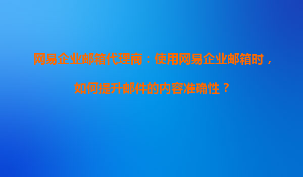 2025-08-23網(wǎng)易企業(yè)郵箱代理商:使用網(wǎng)易企業(yè)郵箱時(shí),如何提升郵件的內(nèi)容準(zhǔn)確性? 在當(dāng)今快節(jié)奏的商業(yè)環(huán)境中,電子郵件作為企業(yè)溝通的重要工具,其內(nèi)容的準(zhǔn)確性直接影響到企業(yè)的專業(yè)形象和業(yè)務(wù)效率。作為網(wǎng)易企業(yè)郵箱...