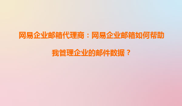 2025-08-23網(wǎng)易企業(yè)郵箱代理商:網(wǎng)易企業(yè)郵箱如何幫助我管理企業(yè)的郵件數(shù)據(jù)? 在當(dāng)今數(shù)字化時(shí)代,企業(yè)郵件已成為日常溝通和業(yè)務(wù)運(yùn)營(yíng)的核心工具之一。如何高效、安全地管理企業(yè)郵件數(shù)據(jù),成為許多企業(yè)關(guān)注的焦點(diǎn)。作為國(guó)內(nèi)...