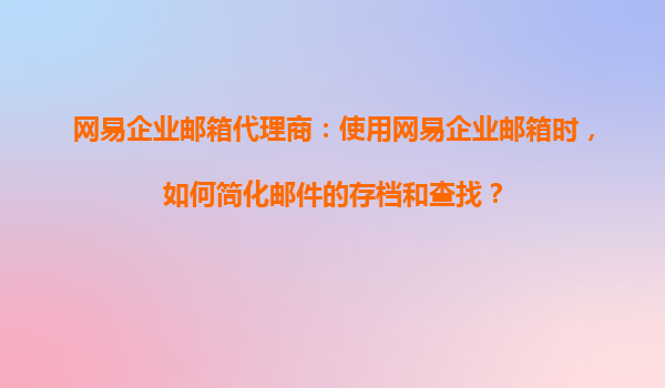2025-08-22網(wǎng)易企業(yè)郵箱代理商:使用網(wǎng)易企業(yè)郵箱時,如何簡化郵件的存檔和查找? 引言 在現(xiàn)代企業(yè)中,電子郵件是日常溝通的重要工具之一。隨著郵件數(shù)量的不斷增加,如何高效地存檔和查找郵件成為許多企業(yè)面臨的挑戰(zhàn)...