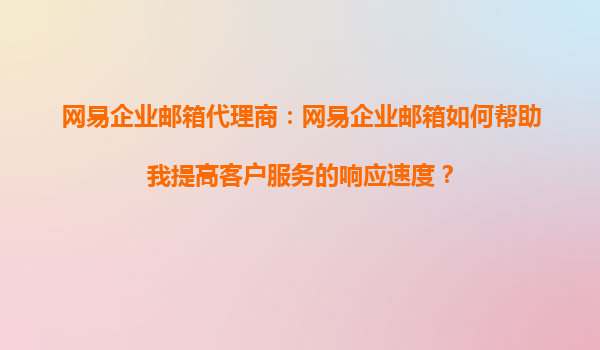 2025-08-22網(wǎng)易企業(yè)郵箱如何幫助提高客戶服務(wù)響應(yīng)速度 在當(dāng)今快節(jié)奏的商業(yè)環(huán)境中,客戶服務(wù)的響應(yīng)速度直接影響企業(yè)形象和客戶滿意度。網(wǎng)易企業(yè)郵箱憑借其豐富的功能和穩(wěn)定的性能,成為許多企業(yè)提升客戶服務(wù)效率的首選工具。 ...