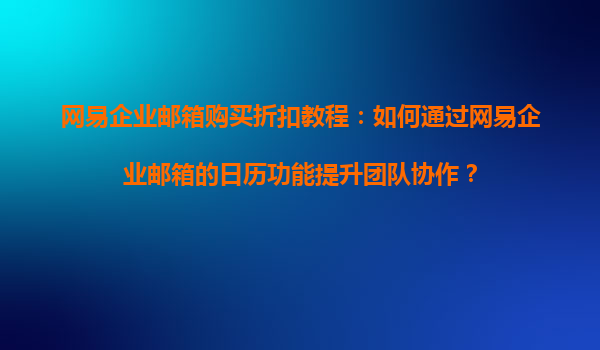 2025-08-21網(wǎng)易企業(yè)郵箱購買折扣教程:如何通過網(wǎng)易企業(yè)郵箱的日歷功能提升團(tuán)隊(duì)協(xié)作? 一、網(wǎng)易企業(yè)郵箱的團(tuán)隊(duì)協(xié)作優(yōu)勢 網(wǎng)易企業(yè)郵箱作為國內(nèi)領(lǐng)先的企業(yè)通信工具,不僅提供穩(wěn)定高效的郵件服務(wù),還集成了強(qiáng)大...