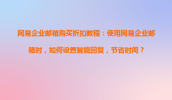 2025-08-21網(wǎng)易企業(yè)郵箱購買折扣教程:使用網(wǎng)易企業(yè)郵箱時(shí),如何設(shè)置智能回復(fù),節(jié)省時(shí)間? 一、網(wǎng)易企業(yè)郵箱的優(yōu)勢 網(wǎng)易企業(yè)郵箱作為國內(nèi)知名的企業(yè)級(jí)郵箱服務(wù),憑借其穩(wěn)定的性能、強(qiáng)大的功能和優(yōu)質(zhì)的客戶服務(wù),贏得...