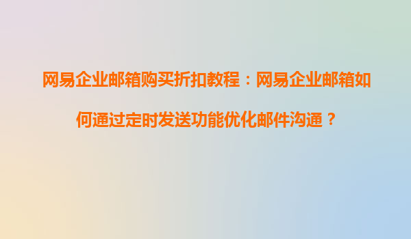 2025-08-21網(wǎng)易企業(yè)郵箱購買折扣教程:網(wǎng)易企業(yè)郵箱如何通過定時(shí)發(fā)送功能優(yōu)化郵件溝通? 一、網(wǎng)易企業(yè)郵箱的購買與折扣政策 1.官方購買渠道與折扣活動(dòng) 網(wǎng)易企業(yè)郵箱提供官網(wǎng)直購、代理商合作兩種主要購買方式。新用...