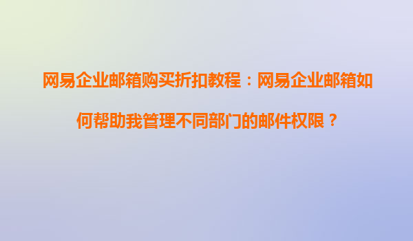 2025-08-21網(wǎng)易企業(yè)郵箱購買折扣教程:網(wǎng)易企業(yè)郵箱如何幫助我管理不同部門的郵件權(quán)限? 在現(xiàn)代企業(yè)管理中,高效的郵件系統(tǒng)是保障內(nèi)部溝通順暢的重要工具。網(wǎng)易企業(yè)郵箱作為國內(nèi)領(lǐng)先的企業(yè)級(jí)郵箱服務(wù),不僅...